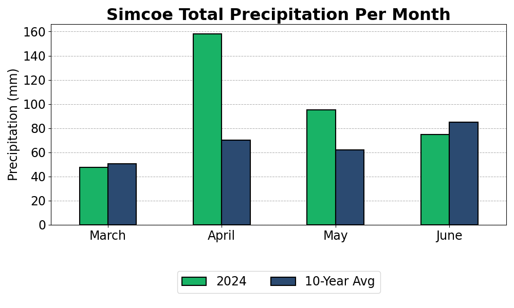 Brassica Crops – Harvest continues for broccoli, cabbage and kale with early cauliflower fields starting soon. High amounts of rainfall the past week will mean that conditions are more favourable for Alternaria (Figure 1). Reference the Ontario Crop Protection Hub to determine what products are registered for Alternaria depending on the specific Brassica crop that you are growing. Switch 62.5 WG fungicide is registered for suppression of Alternaria on head Brassicas as an Emergency Use Registration (EUR) until July 7th, 2024. Early detection and management of Alternaria will reduce potential inoculum later in the season. Alternaria resistance has been documented in other regions outside of Ontario and it is important to rotate FRAC groups after every Alternaria application. The degree day threshold for the second generation of cabbage maggot has been surpassed in Essex and shortly in Chatham-Kent, Norfolk and Lambton. Dig up wilted plants and look for the root cause, whether it’s cabbage maggot, clubroot, nematodes or some other factor.